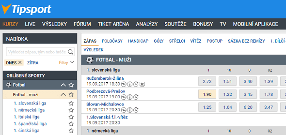 Sázení u Tipsportu je široké a přizpůsobené pro naše trhy.